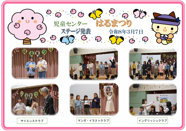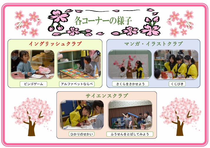 小学生土曜クラブに参加している子どもたちが中心になって、「はるまつり」を開催しました。多くの親子に楽しんでいただきました。
