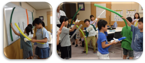 高学年は、チーム対抗 ”Let’s make a word”ゲーム。Girls team vs Boys teamに分かれ、3文字の単語をどちらが早く作れるか競いました。白熱したゲームが繰り広げられ、結果 Boys team が勝ちました。