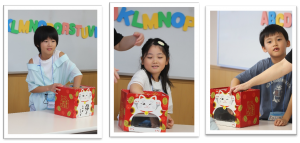 低学年は、箱の中に入っているアルファベットを当てる”Guess what’s in the box?”ゲーム。