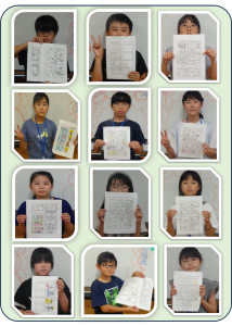 今回のマンガ・イラストクラブは、「4コママンガ制作」を行いました。ひとりひとりが考えた4コマのマンガを丁寧に仕上げて完成させました。子どもたちの個性あふれる作品ができあがりました。