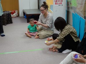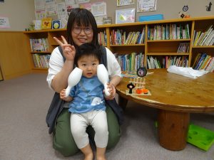 ▲手あそびや体を使った遊びをした後、発達のお話しを聞きました。