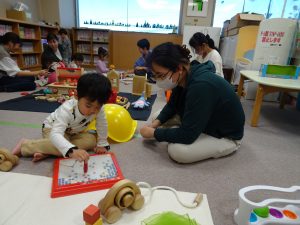 ▲たくさんの良いおもちゃを紹介していただいて遊びました。