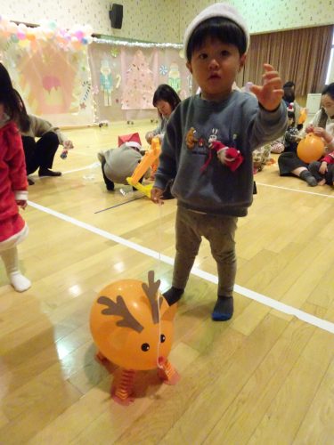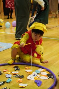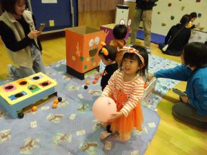 ▲秋祭りにちなんで、水風船つりと動物つりもしました。