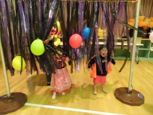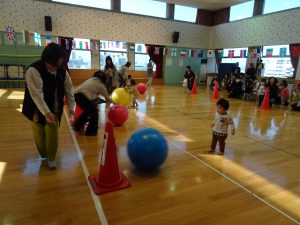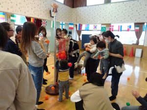 ▲パラバルーンで遊んだり、楽器や音が出るおもちゃに触れました。