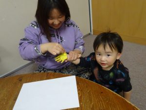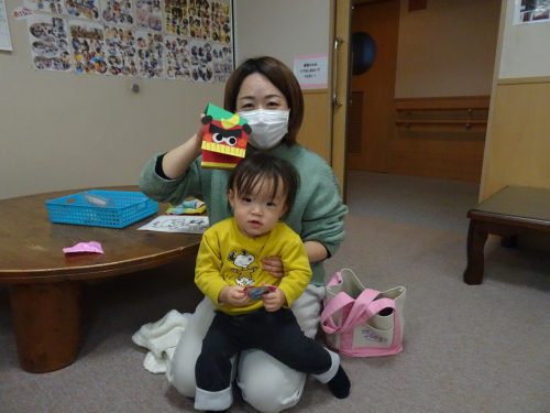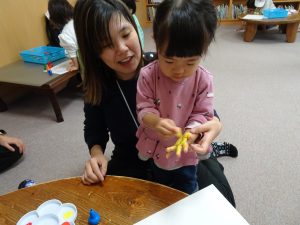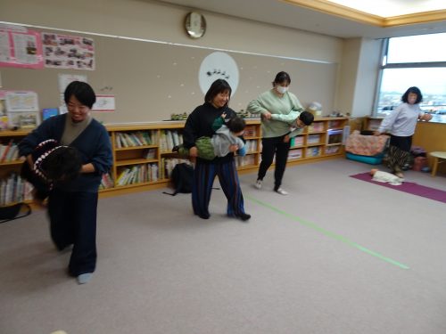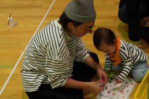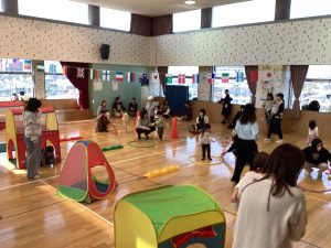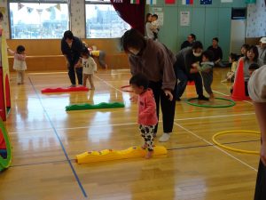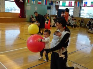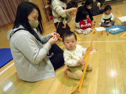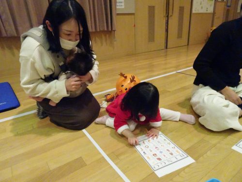 ▲手あそびや体を使った遊びをした後、発達のお話しを聞きました。