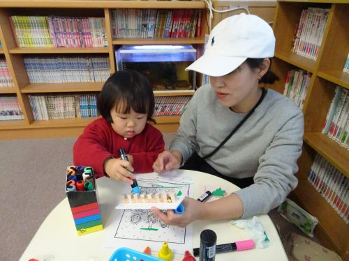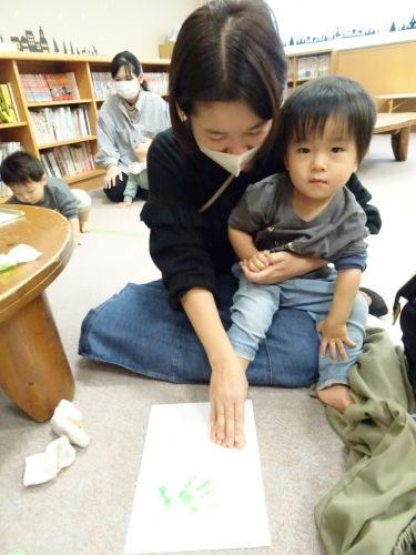 ▲母は読み聞かせについて聞き、子どもたちは楽しい絵本の時間でした。